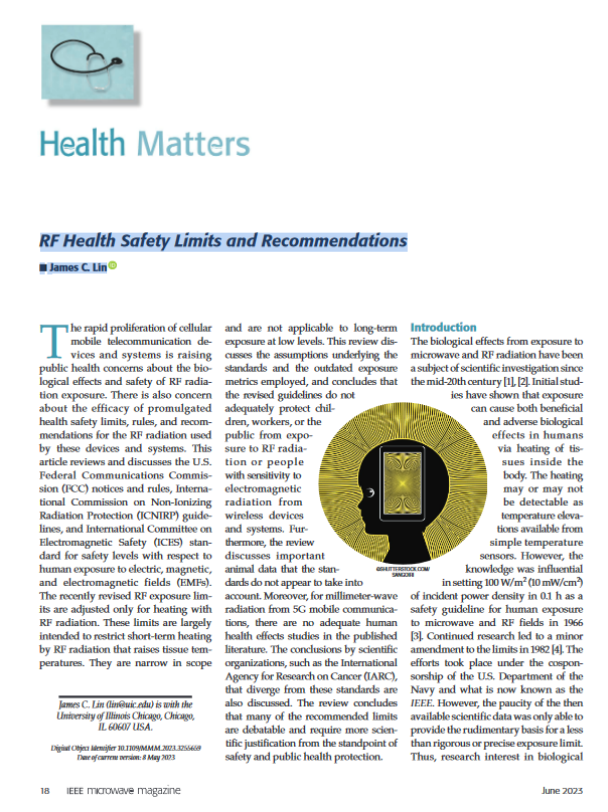 - RF Health Safety Limits and Recommendations – James C. Lin – IEEE Microwave Magazine
