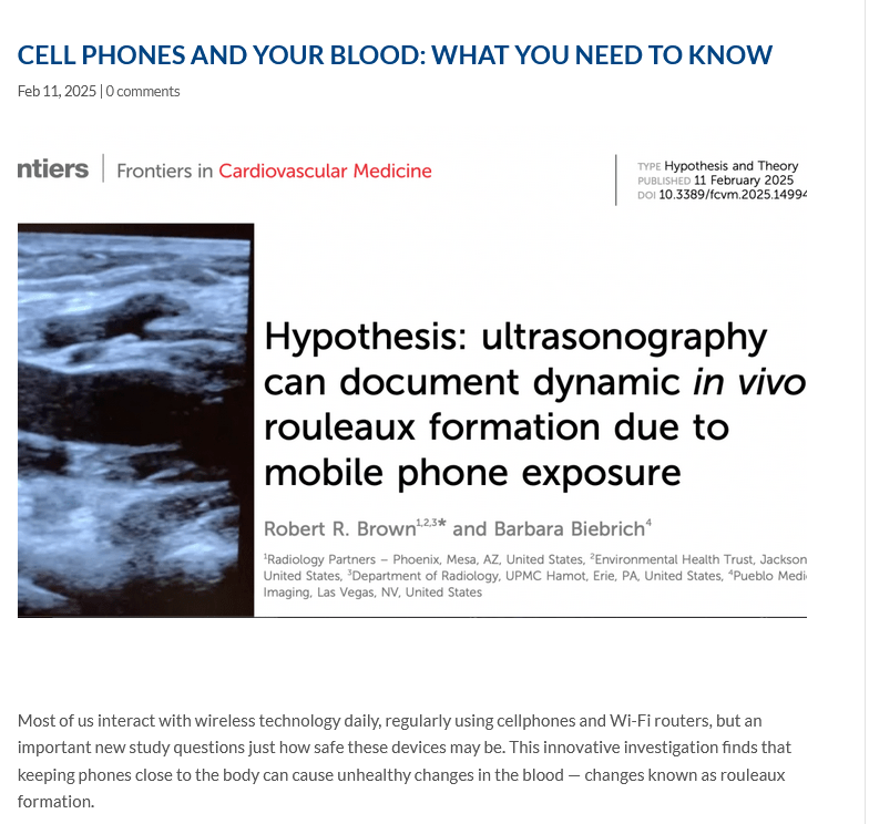 Hypothesis: ultrasonography can document dynamic in vivo rouleaux formation due to mobile phone exposure https://www.frontiersin.org/journals/cardiovascular-medicine/articles/10.3389/fcvm.2025.1499499/full